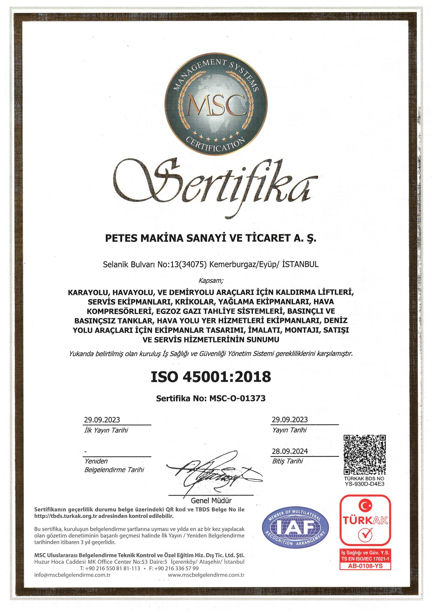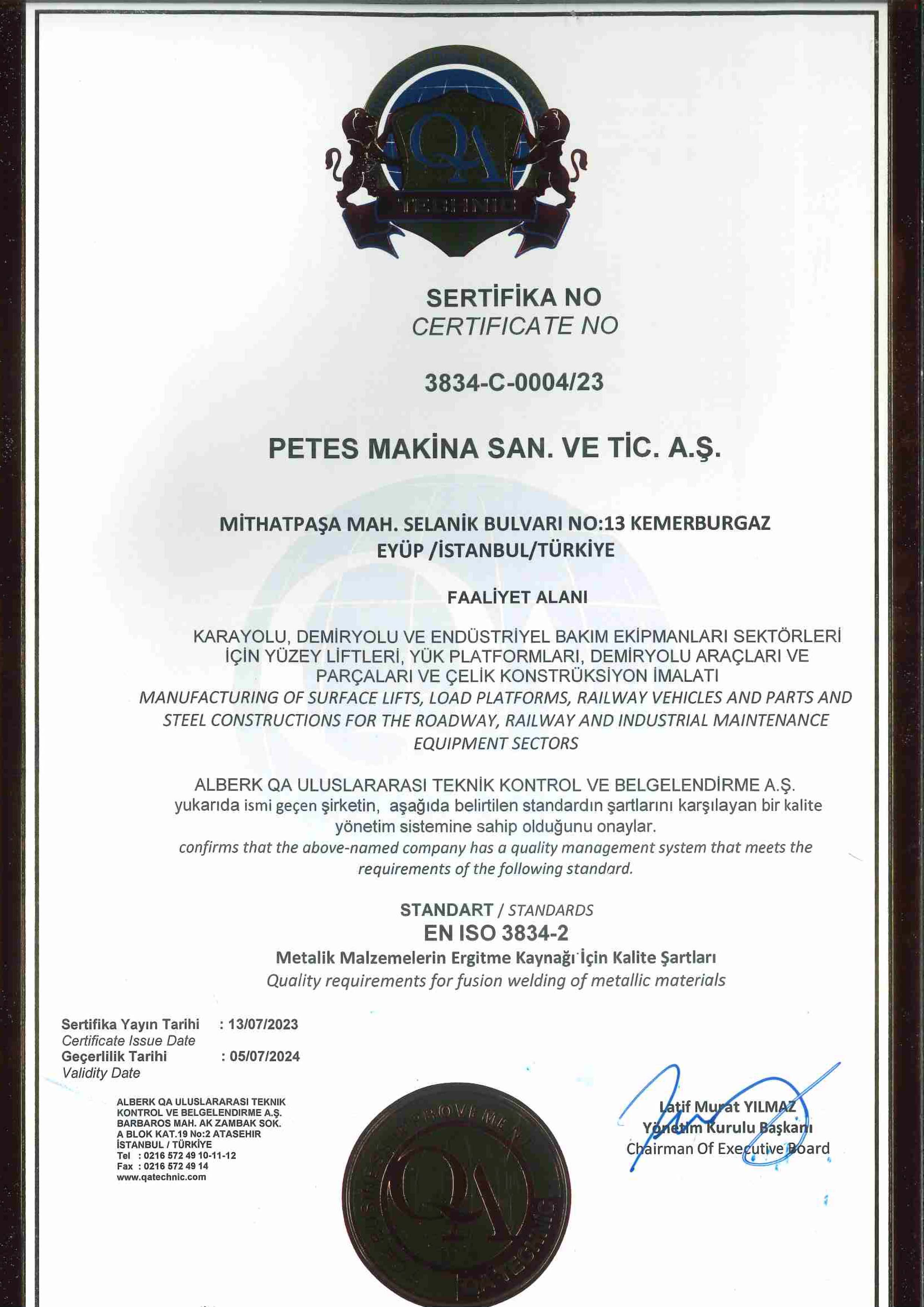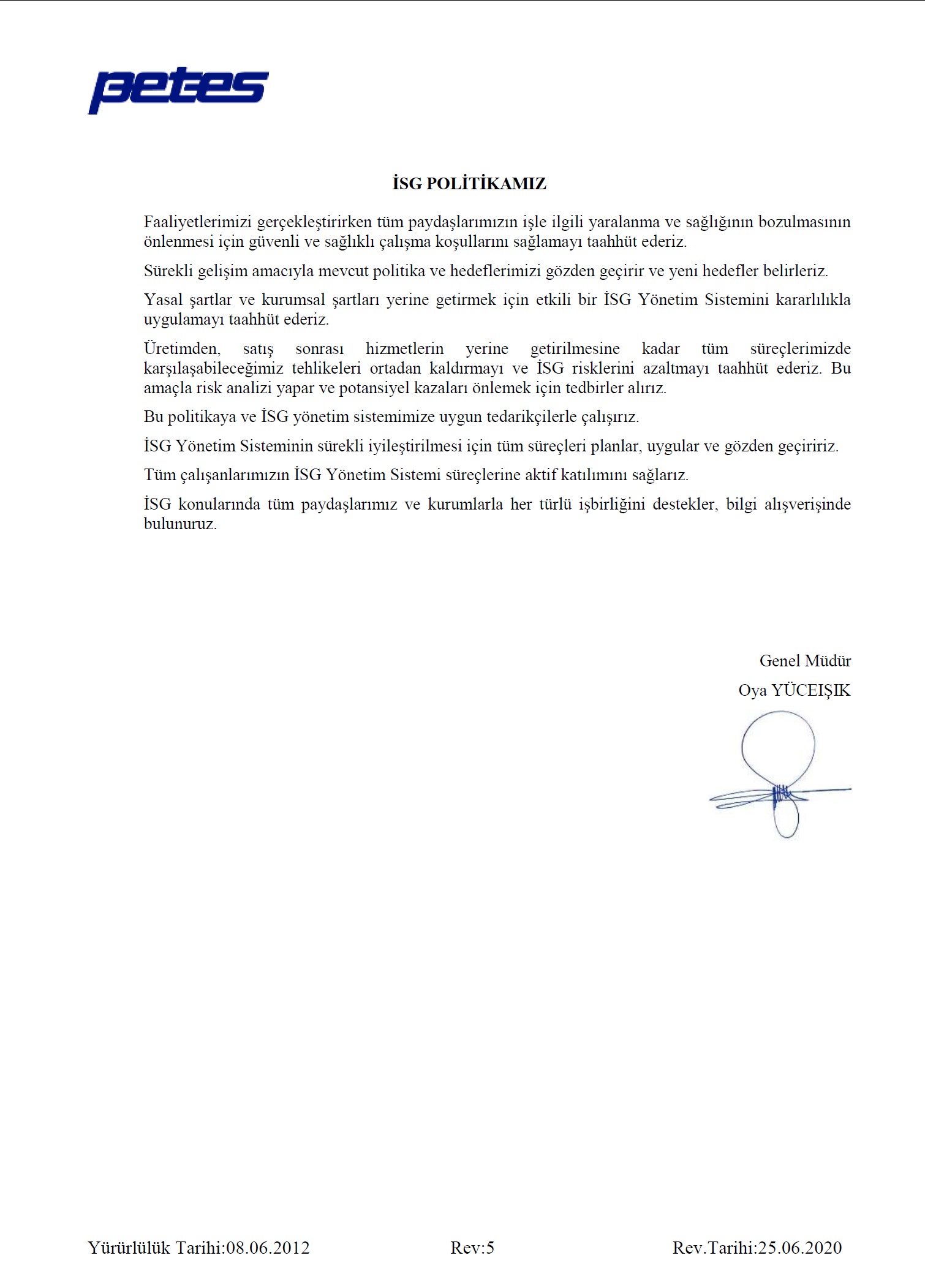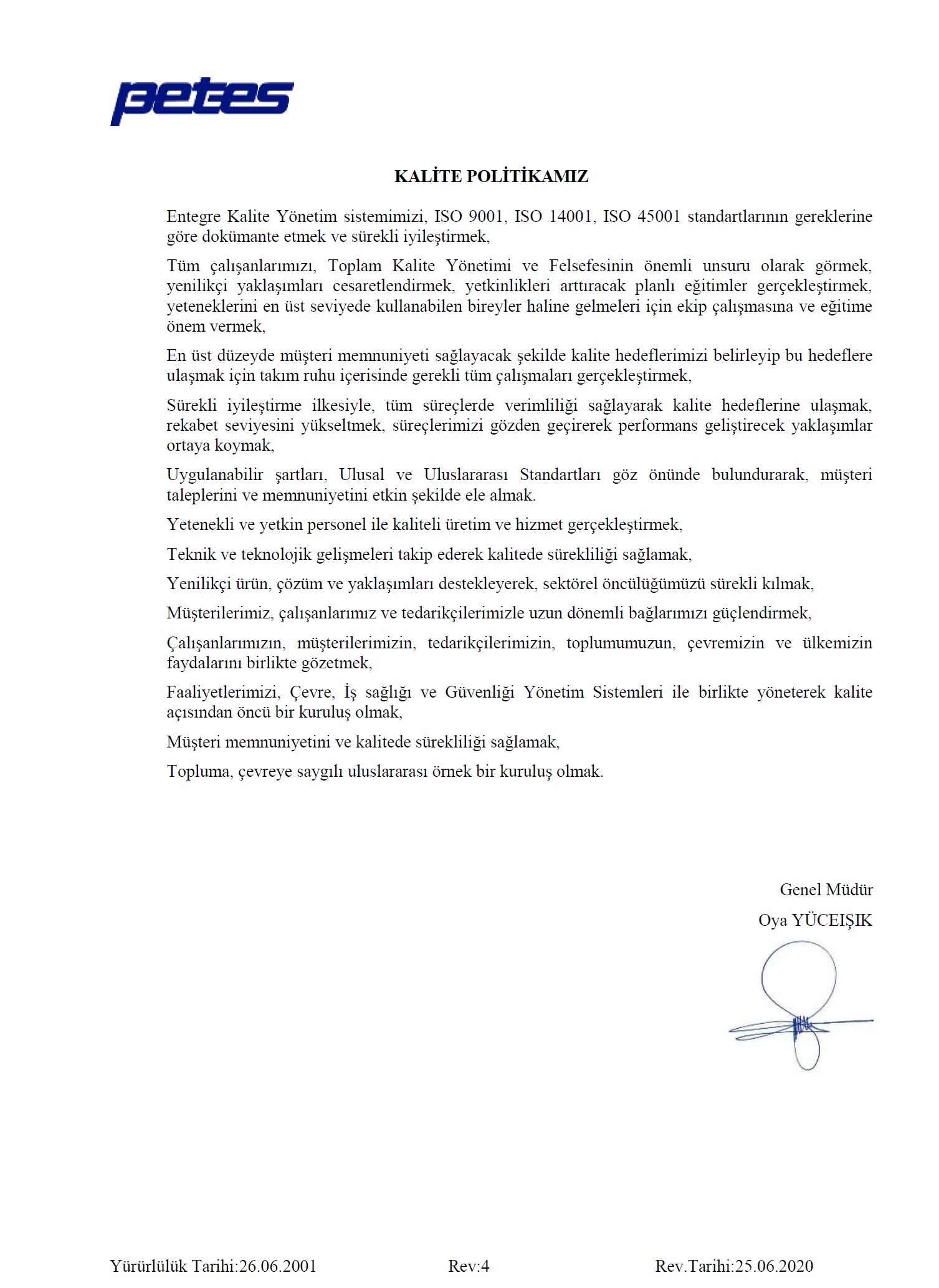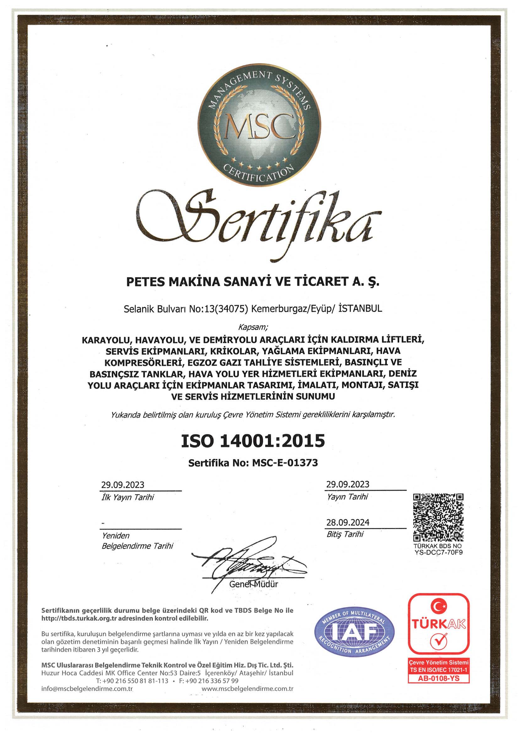 ISO 9001’ e ilave olarak 2011 yılında çalışmalarına başlanan TS EN ISO 14001:2004 ve OHSAS 18001:2007 kalite yönetim sistemleri, 2012 yılında şirket içinde uygulamaya geçmiş ve belgelendirilmiştir.