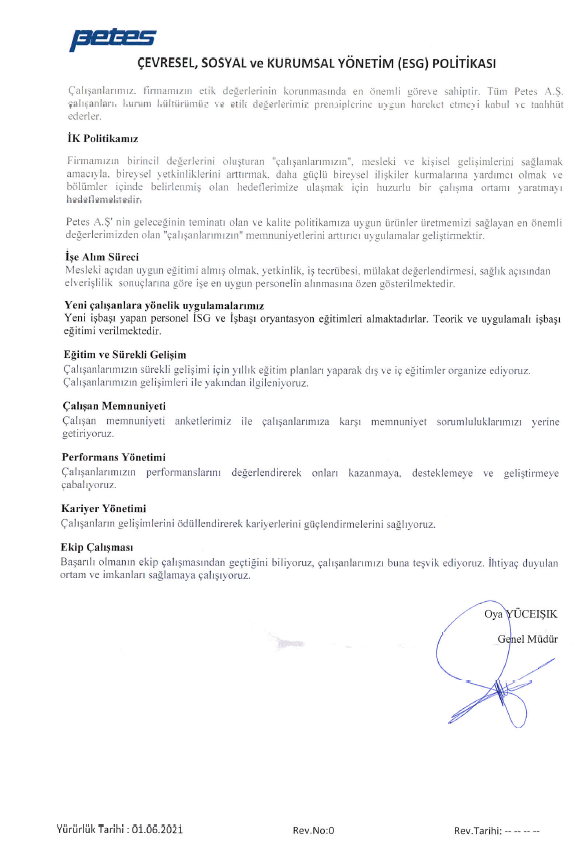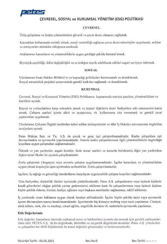 PETES MAKİNA SANAYİ VE TİCARET A.Ş